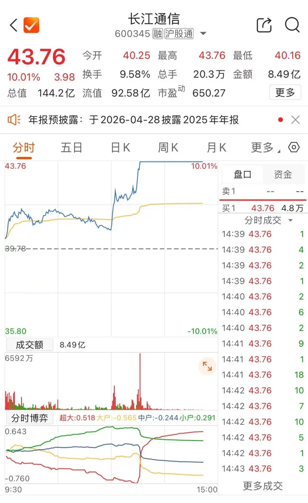 3月10日午后,通信设备板块持续走高,长江通信(600345)异动拉升涨停。